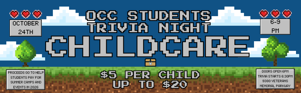 We will provide sandwiches and chips for the children. There will be background checked leaders and students watching them. The money that is given for childcare will go back into the OCC Students Ministry to help them pay for camps and other summer events.